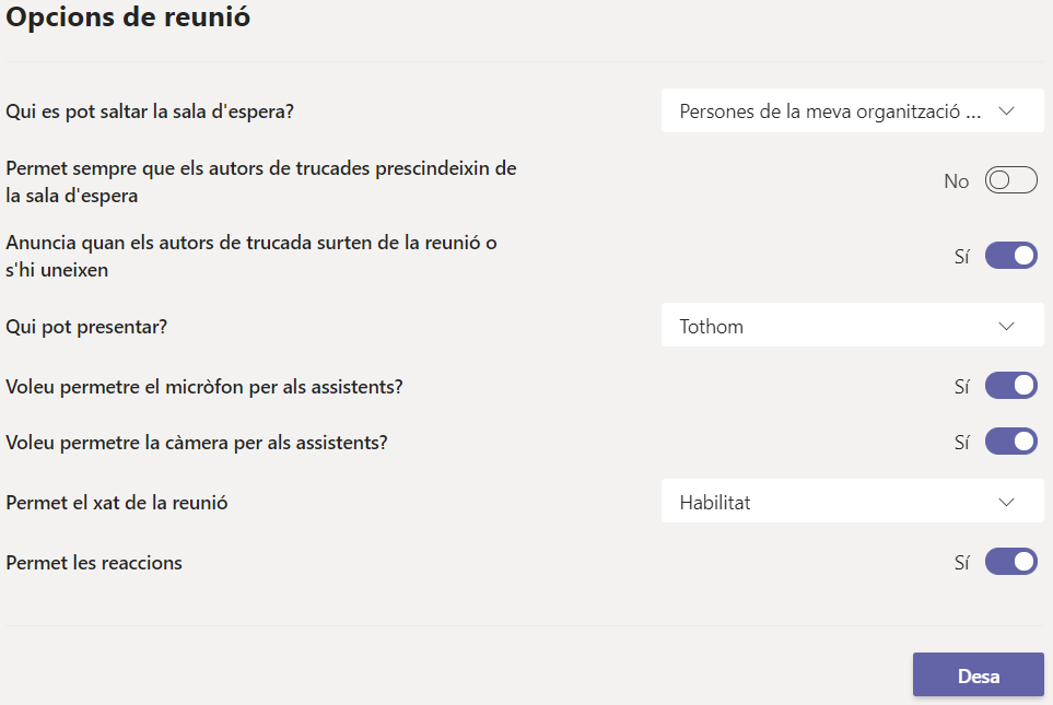 Crear una reunió amb Microsoft Teams amb sala d'espera