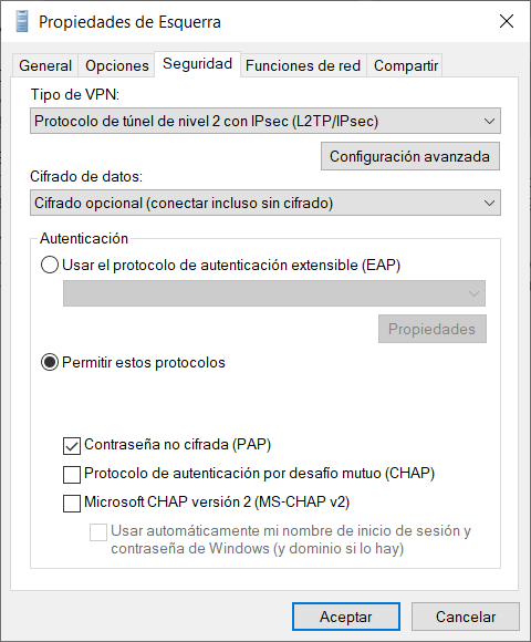 No es pot connectar a Esquerra quan intentes connectar-te a la VPN