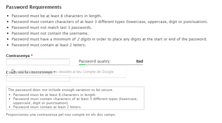 Demana una contrasenya nova". En cas de compte bloquejat, podeu demanar que us el desbloquegin a